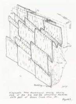 One report described the ladder veins as the result of a 100 percent extension of the rock as the first part of a progressive, presumably Cretaceous, deformation that eventually had a several hundred percent contraction. On the other hand, Freitag attributed them to diagenesis. This is quite a variety of opinions. Some better study is needed for something that is such an important guide to ore. Ladder veins have been observed in progressive penecontemporaneous deformation elsewhere and that seems to be the easiest explanation here. |