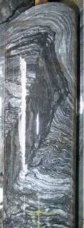 When one looks at Greens Creek core day after day, one sees some very strange stuff. One of the things I saw were areas where the phyllitic fabric disappeared. Completely unfoliated rock cross-cut the foliation--it was as if concrete had been poured into cracks in the rock. There are other non-conforming and apparently unmetamorphosed rocks in and near the ore zones too. I saw a cross cutting sulfide carbonate breccia in the 200S zone. To some extent-and in some places, the conglomerates themselves have these characteristics. The easy explanation is that they are clastic dikes. But the reality is that they have been ignored because they do not fit the standard model. |