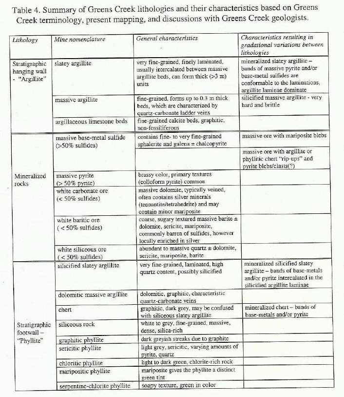 found at Greens Creek are noted in rocks that have