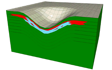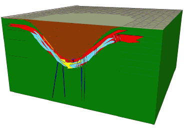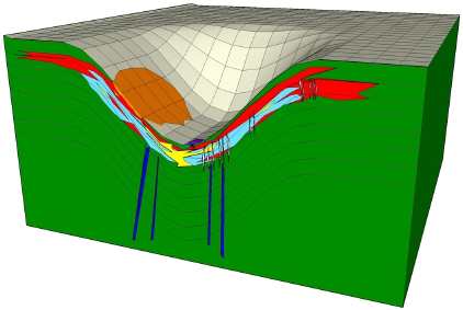Ultimately the deformation slows, stops and is buried. The deformed strata are preserved giving the appearance of a stratabound event. | |