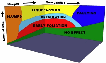progressive penecontemporaneous deformation. Changes in deformation with depth and