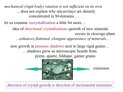 Inherent in the stress model suggested by Niejmeir is the formation of adjacent high and low pressure zones. For pressure solution, this gives the opportunity for a recrystallization of the rock as minerals are dissolved from the high pressure zones and redeposited in the lower pressure zones. This could be a continuous process.