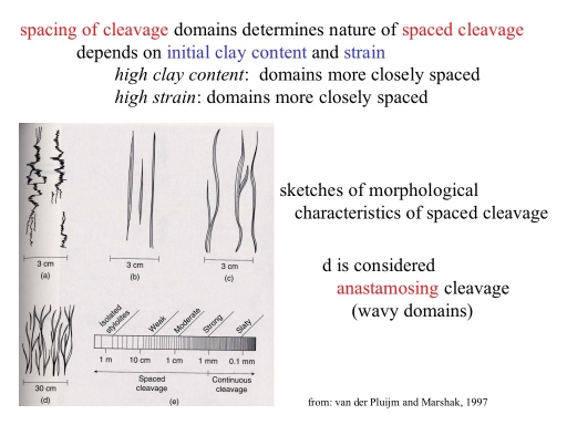 | In looking at these examples, one shouldn't forget the point made above--much if not most of the time, spaced cleavage in phyllosilicate bearing rocks will be cutting or superimposed on a primary foliation. None of the diagrams depicts an earlier foliation that is cross-cut. | ![]() |